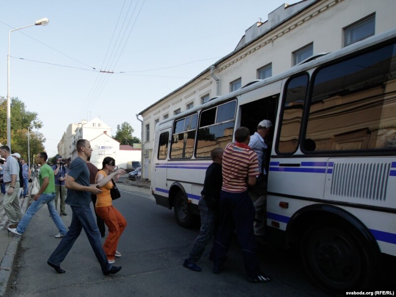 17:00 На пляцоўцы ля Дому афіцэраў 6 мікрааўтобусаў зь людзьмі ў цывільным. Наш карэспандэнт пачуў, як у рацыі прагучала «Увага, адзінкам з Заводзкага РУУС, задзейнічаным у мерапрыемстве, пастраеньне каля аўтобусаў».
