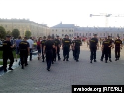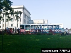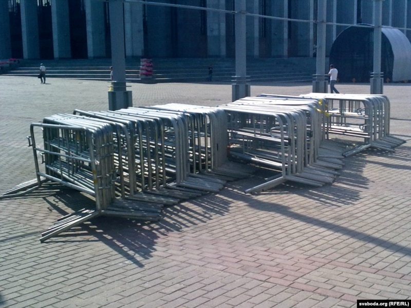 Каля Палацу прафсаюзаў стаяць агароджы. Таксама 6 мікрааўтобусаў зь людзьмі спартовага выгляду знаходзяцца за Палацам рэспублікі на вуліцы Энгельса і ў дварах.