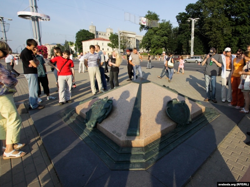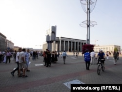 19:10 Некалькі дзясяткаў чалавек знаходзяцца каля «нулявога кілямэтра» на Кастрычніцкай плошчы. Яны ня пляскаюць, проста ходзяць вакол.