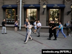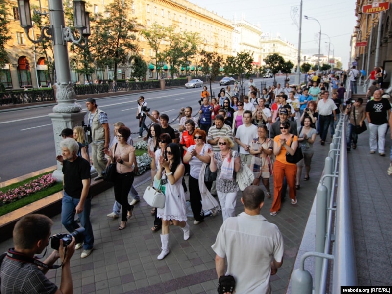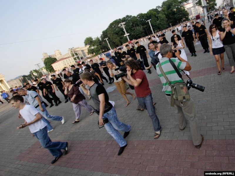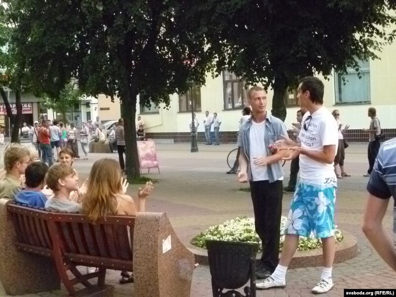 Ужо на другую акцыю на Кастрычніцкай плошчы ў Менску сабралася больш за 200 чалавек. Моладзь слухала сьпевы пад гітару і сама спрабавала сьпяваць. Тады супрацоўнікі спэцслужбаў толькі сачылі за акцыяй, і яна абышлася без затрыманьняў.