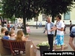 19:15 Журналісты бралі інтэрвію ў аднаго з удзельнікаў акцыі каля «нулявога кілямэтра», і да яго падышлі адразу міліцыянты. Намесьнік начальніка менскай міліцыі Ігар Яўсееў стаў крычаць журналістам, каб яны спынілі гэтае інтэрвію. Яўсееў таксама загадаў журналістам адысьці на сто мэтраў, іначай гэта будзе расцэньвацца як несанкцыянаваная акцыя.