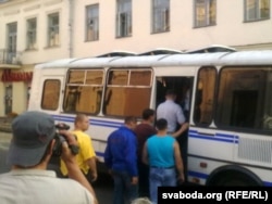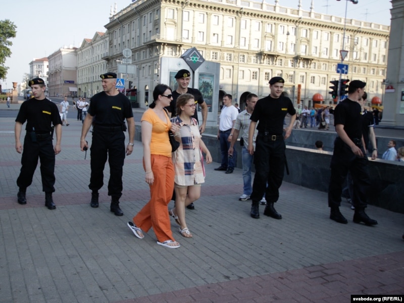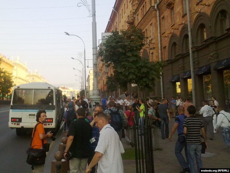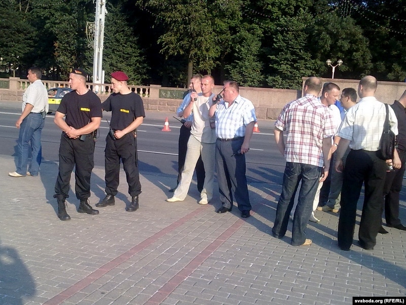 18:00 Да нашага карэспандэнта Алеся Дашчынскага ля Кастрычніцкай плошчы падышлі двое ў цывільным і кажуць: «Ну дык вы ўсю інфармацыю перадалі пра колькасьць аўтамабіляў? Давайце цяпер пройдзем з намі». Алесь Дашчынскі сказаў, што нікуды ісьці ня хоча і паказаў сваё журналісцкае пасьведчаньне. Параіўшыся, людзі ў цывільным адступілі.