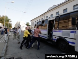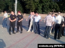 «23 чалавекі, якія былі затрыманыя 7 ліпеня — іх папярэдзілі працадаўцы, каб яны сёньня не прыходзілі. Інакш у іх будуць праблемы. Аж да звальненьня. Да працадаўцаў прыходзілі ці то супрацоўнікі КДБ, то міліцыі, і празь іх спрабавалі неяк паўплываць на рашэньні людзей — ісьці на плошчу ці не».