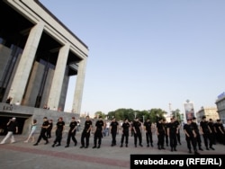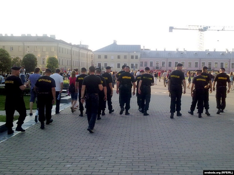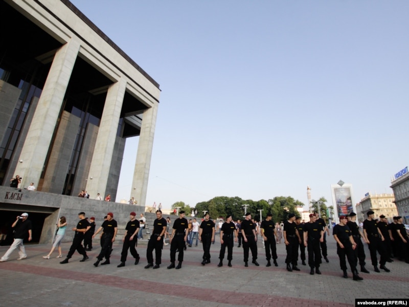 18:09 @Shuroch_ka: За Чырвоным касьцёлам 6 МАЗаў і 3 мікрааўтобусы. Усе без нумароў, зь цёмным шклом.18:00 Да нашага карэспандэнта Алеся Дашчынскага ля Кастрычніцкай плошчы падышлі двое ў цывільным і кажуць: «Ну дык вы ўсю інфармацыю перадалі пра колькасьць аўтамабіляў? Давайце цяпер пройдзем з намі». Алесь Дашчынскі сказаў, што нікуды ісьці ня хоча і паказаў сваё журналісцкае пасьведчаньне. Параіўшыся, людзі ў цывільным адступілі.