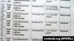 21 ліпеня Магілёўскі абласны суд пакінуў без задавальненьня скаргі пяці грамадзян, якім раней Ленінскі суд Магілёва прысудзіў адміністрацыйныя арышты паводле абвінавачаньня ва ўдзеле ў несанкцыянаваных акцыях 3 і 6 ліпеня. Заяўнікі патрабавалі прызнаць пастановы райсуду незаконнымі з прычыны адсутнасьці складу правапарушэньня.