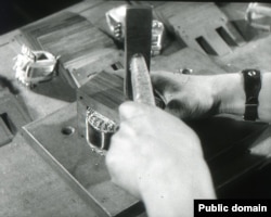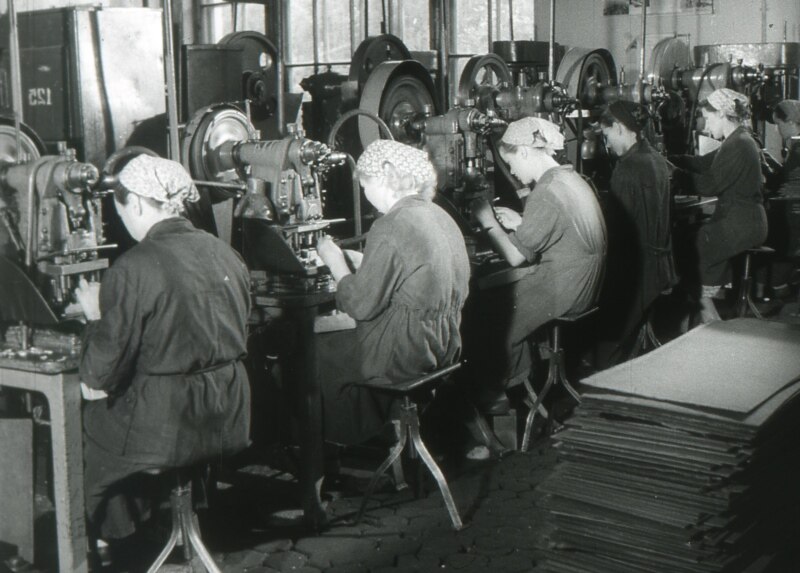 Наступны цэх плястмасаў. Тут 47 жанчын і трое інвалідаў заліваюць чырвоны расплаўлены плястык у рознай формы прэсы, вырабляюць ручкі, кнопкі, трубкі і да т.п. У гэтых рабочых найгоршыя ўмовы на заводзе з-за гарачыні матэрыялаў і шкоднага полымя. Ім даюць 30 дзён адпачынку, максымум для рабочых.