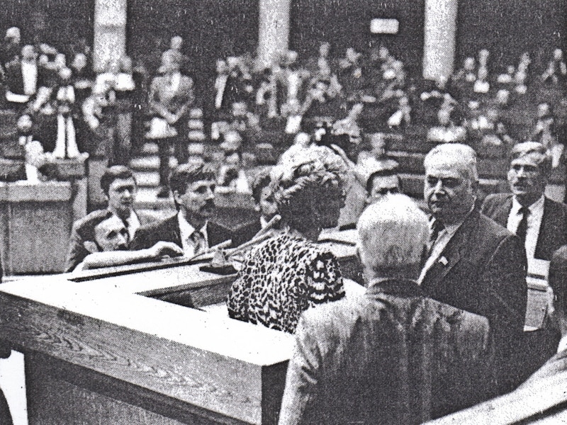 Дэпутаты БНФ зганяюць з трыбуны першага сакратара ЦК КПБ Анатоля Малафеева, 24 жніўня 1991 г.