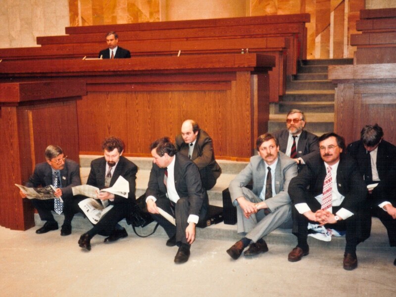Аляксандар Шут: Апазыцыя — быў рухавік таго Вярхоўнага Савету. Ён бы застаўся шэры-шэры. Яго б, можа, і "ўпіхнулі" ў незалежнасьць, бо тады камуністы бараніліся, баяліся Ельцына, баяліся, што іх будуць "вешаць". А апазыцыя якраз выступала за тое, каб незалежнасьць была сапраўдная. Таму генэратарамі многіх законаў, якія тычыліся незалежнай палітыкі, эканомікі, гербу, сьцяга, мовы, была якраз апазыцыя.