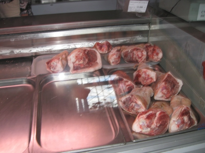 "Мясную прадукцыю мы заказваем і яе атрымліваем штодня. Мы звычайна атрымліваем абвальную прадукцыю, то бок мяса без касьцей".