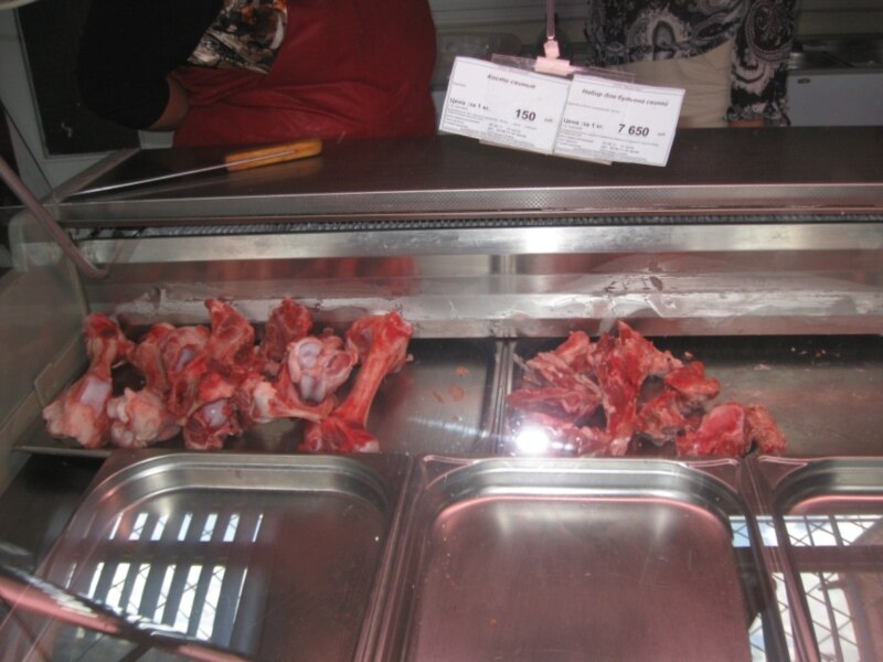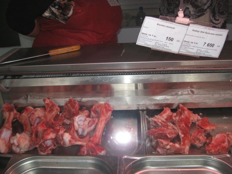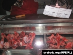 Карэспандэнтка: "Сьвіная скура затое ёсьць па 500 рублёў за кіляграм — амаль дарма. Зьвяртаюся да прадавачкі. А чаму няма мяса?".