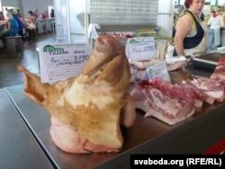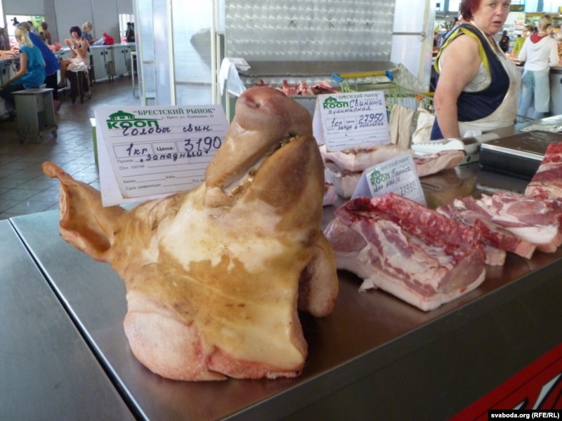 У Берасьці на Калгасным рынку штодзень выстройваецца чарга ля крамы ААТ «Белавескі». Пакупнікі кажуць, што тут, бадай, самыя нізкія цэны. Шыйная частка сьвініны тут каштуе 37 тысяч 600 рублёў за кіляграм, лапатачная і сьцегнавая частка — па 30 тысяч 360 рублёў.
