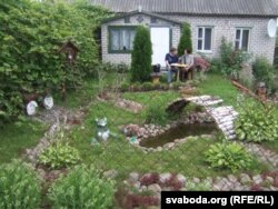 Спыняемся ля сьвежапафарбаванай у сьветлыя тоны хаціны з драўлянымі фігуркамі птушак. Ідзем па ўвітай плюшчом сьцяжынцы, каб сустрэцца з прадпрымальніцай Аксанай Лябедзькай. Прывабная, інтэлігентнага выгляду кабета прабачаецца, што ня можа гаварыць на адной з намі мове.