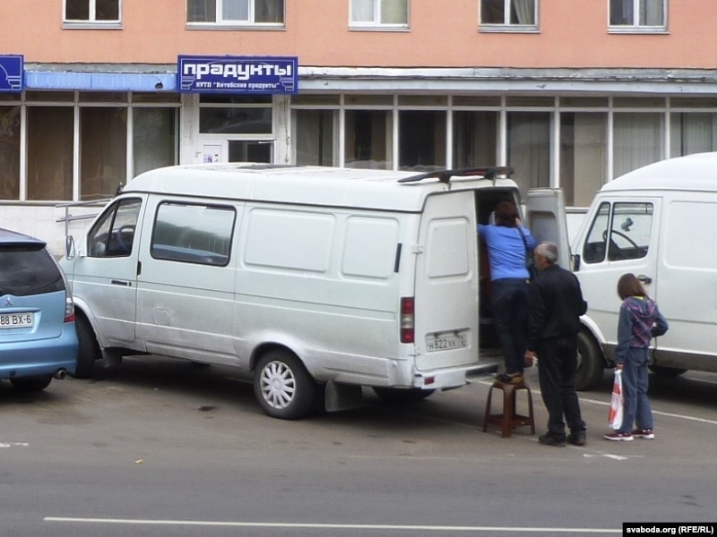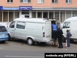 Грузавічок з расейскімі нумарамі ля віцебскай крамы.