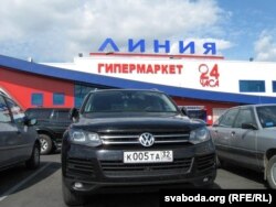 Ля гіпэрмаркету «Лінія» спадар Міхаіл з расейскага Навазыбкава выгружаў з крамнага вазка шмат розных прадуктаў да сябе ў аўтамабіль: