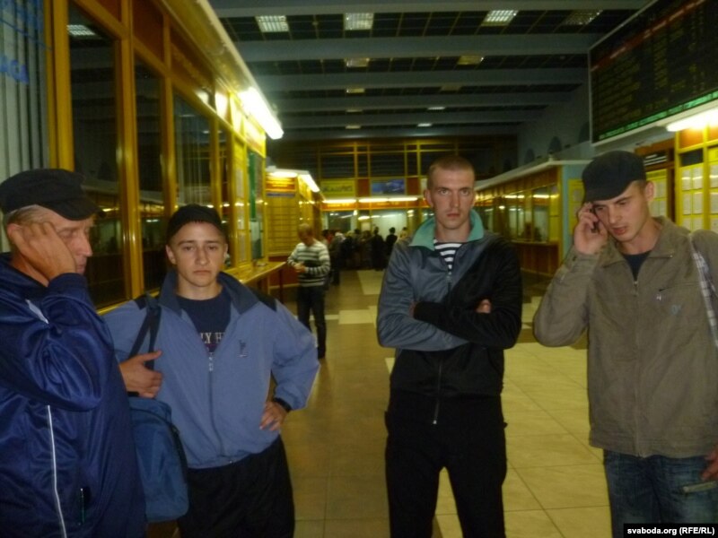 На магілёўскім чыгуначным вакзале Алега Федаркевіча, Ільлю Васілевіча, Дзьмітрыя Буланава і Аляксандра Малчанава сустрэў карэспандэнт Радыё Свабода.