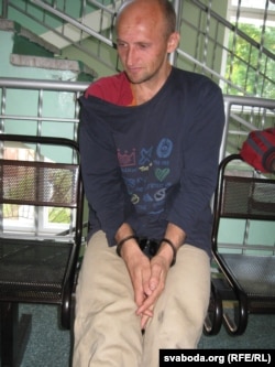 На здымку: Кастусь Жукоўскі ў калідоры суду Цэнтральнага раёну.
