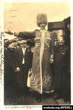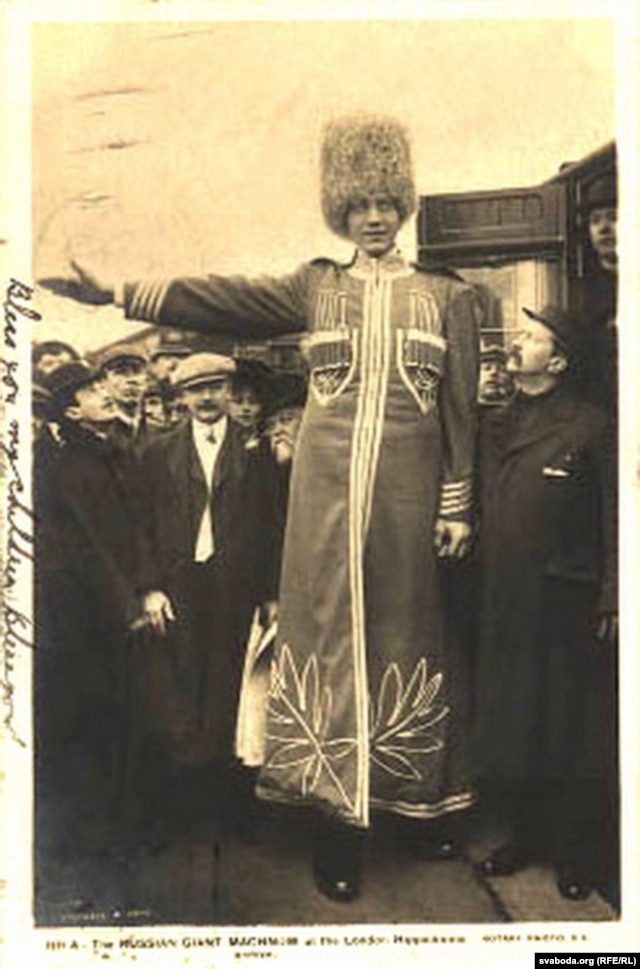 У гістарычнай залі, пакуль гаспадыня заводзіла стары патэфон, маю ўвагу прыцягнуў стэнд, прысьвечаны нейкаму агромністаму волату ў цыліндры. Фатаздымкі, выразкі з газэт. Пад гукі «На сопках Маньчжурыі» гісторыя самага высокага беларуса слухалася асабліва шчымліва.