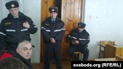 Людзі спрачаюцца з канвоем. Кажуць, што суд ілжывы, што судзяць паводле палітычных матываў.
