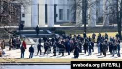 12.45 Міліцыянты пачалі абносіць турнікетамі будынак Акадэміі навук — месца збору ўдзельнікаў акцыі.