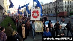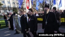 18:25 Зьявіліся ікона Маці Божай ахвяраў Чарнобыля і Чарнобыльскі звон. Моладзь скандуе «Жыве Беларусь!». Зьявіўся вялізны бел-чырвона-белы сьцяг даўжынёй прыкладна 6 мэтраў.