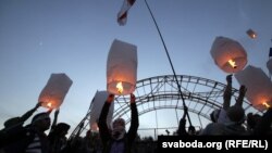 20:35 Выступае адзін зь лідэраў «Маладога фронту» Мікола Дземідзенка. Маладафронтаўцы запускаюць ліхтарыкі.
