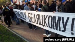 19:45 Дэманстранты дайшлі да парку Дружбы народаў. Арганізатары акцыі паведамілі Радыё Свабода, што ім не ўдалося знайсьці машыну з гукаўзмацняльнай апаратурай, і прамоўцы вымушаныя будуць карыстацца мэгафонамі.