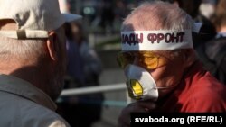 На пляцоўку збору прыйшлі маладафронтаўцы з чорнымі павязкамі на галовах і рэсьпіратарамі.