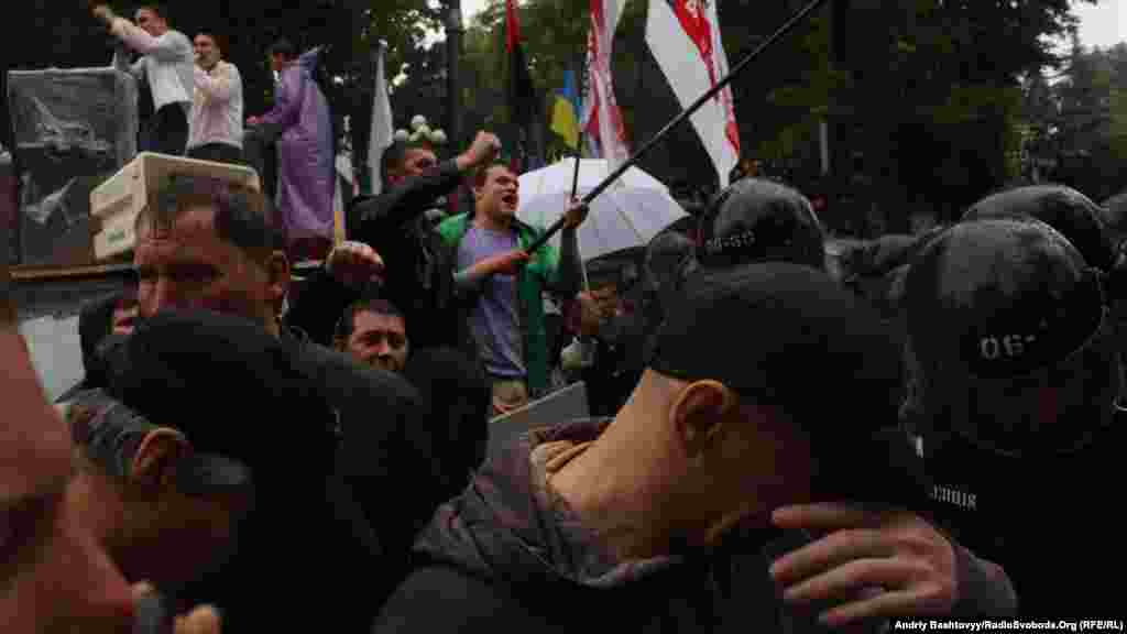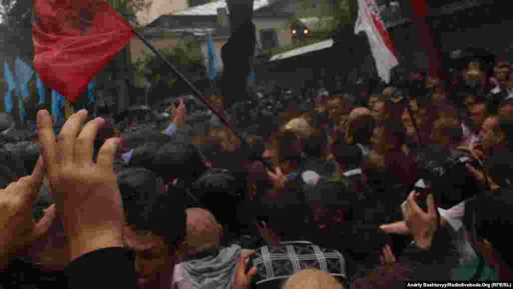 Украінскі спэцназ «Беркут» ужыў сьлезацечны газ супраць удзельнікаў мітынгу пад Вярхоўнай Радай супраць законапраектаў пра асновы моўнай палітыкі. Гэта здарылася пасьля спробы мітынгоўцаў прарваць кардон. Праз воблака газу апанэнты законапраекту адступілі ад кардону на некалькі мэтраў.