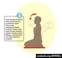 Выконваецца адразу ж за першымі дзьвюма. Зыходнае становішча — стоячы на каленях. Калені варта ставіць адно ад другога на адлегласьці шырыні таза, каб сьцёгны разьмяшчаліся строга вэртыкальна.