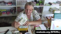 Сенічава: «Гэта мной асабіста куплены шапік. За 3 тысячы даляраў набыла. Я год хадзіла, глядзела, якога тавару не хапае. Кілбасой не гандлявала б, ня мой мэнталітэт. Дзіцячая літаратура разыходзіцца. Жнівень-верасень — і па 9 мільёнаў выручка, а ўзімку — па 2–3 мільёны. Нам зь дзедам хапае — гарод ёсьць, трусы, купілі бычка, канюшыну садзім для іх. Бульбы — не, бо з гэтымі праполкамі-пасадкамі, а нам тры мяхі. Дзед ня п’е і ня смаліць, у стане нарыхтаваць дровы — у нас ЛУАЗ, куды паўтара куба заходзіць. Я зьбіраю ягады-грыбы, дзед зьбірае „сушку“. Да ўсяго ў жыцьці можна прыстасавацца. Мы нарыхтоўваем самі за капейкі, а машына дроў зараз да мільёна...»