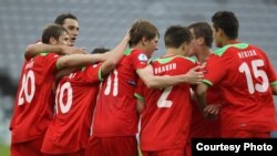 Вяртаньне маладзёвай зборнай Беларусі па футболе з чэмпіянату Эўропы, дзе беларускія футбалісты заваявалі трэцяе месца і пуцёўку на Алімпіяду 2012 году. Менск, 26.06.2011. На фота: Ягор Філіпенка