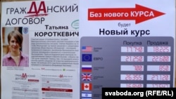 «Гэта наш першы пікет — дэпутатаў „Грамадзянскай дамовы“ і мяне, Тацьцяны Караткевіч. Тэма яго — новы курс, у двух сэнсах. Мы запытваем у грамадзян, ці вераць яны ў сказанае ўладамі на пачатку тыдня, што курс беларускага рубля ня зьменіцца, застанецца 8400. Ніхто зь людзей ня верыць. Другое — мы кажам, што патрэбны новы курс. Неабходна, каб у аснову працы ўлады леглі новыя прынцыпы — гэта інтарэсы выбарцаў».