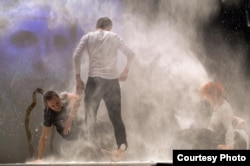 Калі заля выбухнула воплескамі і пасьля трэцяга выхаду актораў устала з крэслаў, на сцэну выйшла прадзюсар спэктаклю Натальля Каляда і, папрасіўшы хвіліну ўвагі, запрасіла на сцэну трох жанчын, каб яны расказалі свае гісторыі. Лера Красоўская, Ірына Багданава і Любоў Кавалёва нагадалі пра лёс сваіх бацькі, брата і сына і заклікалі прысутных нагадаць сваім палітыкам пра тое, што ў ХХІ стагодзьдзі адбываецца зусім побач, у геаграфічным цэнтры Эўропы — у сучаснай Беларусі.