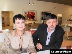 Украінская пісьменьніца Аксана Забужка і яе перакладчык на падляскую Ян Максімюк.