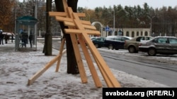 14.55 Мітынг скончыўся. Удзельнікі ўсталёўваюць крыжы і ўскладаюць кветкі.