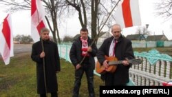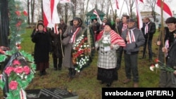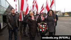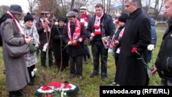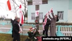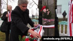 Да крыжа ўсклалі вянок зь бел-чырвона-белымі кветкамі, паставілі запаленыя зьнічкі.