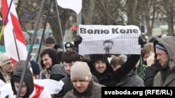 15.20 Старшыня АГП Анатоль Лябедзька паведаміў БелаПАН, што затрыманы выканаўца абавязкаў кіраўніка моладзевай структуры АГП «Маладыя дэмакраты» Дзьмітры Кавалгін. Менавіта ён нёс плякат «Волю Колю!»