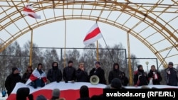 Пляцоўка для мітынгу ў Парку Дружбы народаў агароджана і пачышчана, але вакол — наметы, не расчышчаны сьнег.