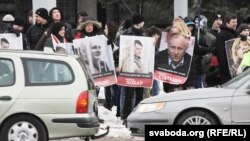 12.30 Пачынаюць фармаваць калёну. Наперадзе — люді з партрэтамі зьніклых.