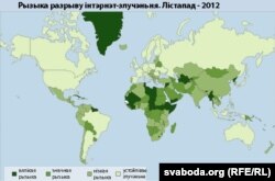 Справаздача The Economist згадвае рэйтынг краінаў, складзены дасьледнікамі інтэрнэту з кампаніі Renesys, адносна «рызыкі адключэньня ад інтэрнэту». У 61 краіне, у якіх толькі адзін або два інтэрнэт-правайдэры, рызыка такога адключэньня ацэньваецца кампаніяй Renesys як вельмі высокая. У далейшых 72 краінах (сюды патрапляе і Беларусь), рызыка адключэньня характарызуецца як значная.