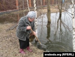 «Ніколі столькі вады не было! Бывала, зойдзе ў склеп, у падпольле, але ня так, як сёлета. Калі быў мой муж жывы — ён быў інвалідам вайны першай групы, на яго хоць нейкую ўвагу зьвярталі. І такога не было — чысьцілі канал, і вада сьцякала. А цяпер іх засьмецілі, і вада нікуды не ідзе, стаіць на адным месцы. Балота — і ўсё тут».