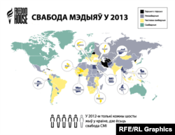Месца Беларусі ў Індэксе свабоды прэсы (2010-2013), у дужках - агульная колькасьць краінаў: