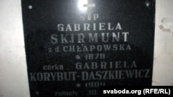 Абразы, пахі, выгляд старых арганаў, пацёртыя лавы, прахалода мураваных сьцен — усё захоўвае дух несавецкай Беларусі. Пад храмам — склеп, дзе ў сьценах спачываюць вечным сном колішнія гаспадары маёнтку. І ўважлівы падарожнік заўважыць дзіўную дату сьмерці дзьвюх жанчын. Габрыэлы Скірмунт і Габрыэлы Карыбут-Дашкевіч. 30 сьнежня 1942-га году. Удавы і дачкі гаспадара Баляслава. Што ж адбылося перад новым 43-м годам?