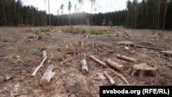Дайшлі мы і глыбока ў лес, да месца высечкі хвояў. Па кольцах на пнях палічылі, колькі ж гадоў дрэвам. Бальшыні — ад 50 да 70. Усяго пад кітайска-беларускі парк плянуюць высечы 2756 гектараў элітнага лесу.