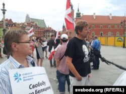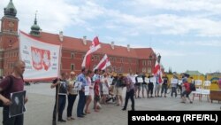 Дакладна апоўдні, у самым сэрцы польскай сталіцы, на Замкавай плошчы, пачаўся пікет, у якім узялі ўдзел каля 30 чалавек – прадстаўнікоў палітычнай эміграцыі ды актывістаў, а таксама польскіх і беларускіх праваабаронцаў.