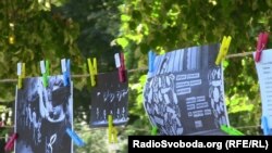 У Кіеве ў Марыінскім парку, дзе ўчора адзначаўся Міжнародны дзень салідарнасьці з грамадзянскай супольнасьцю Беларусі, невядомыя ў масках зрывалі фотаздымкі з выявамі беларускіх акцый пратэсту і патрабаваньняў вызваліць палітвязьняў.