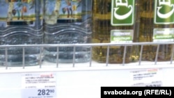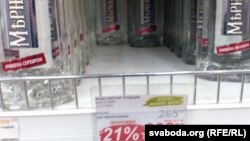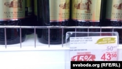 Аналягічная карціна ў вінна-гарэлачным аддзеле. Тут беларуская прысутнасьць большая — «БульбашЪ», «Сваяк», «Налібокі». Усе прыблізна ў адной цэнавай катэгорыі — блізу 10 даляраў за пляшку. Але, зноў жа, не вытрымліваюць канкурэнцыі зь мясцовымі вытворцамі, якія за такія ж паўлітра «Брызг Балтики» просяць удвая меней — ад 150 расейскіх рублёў.