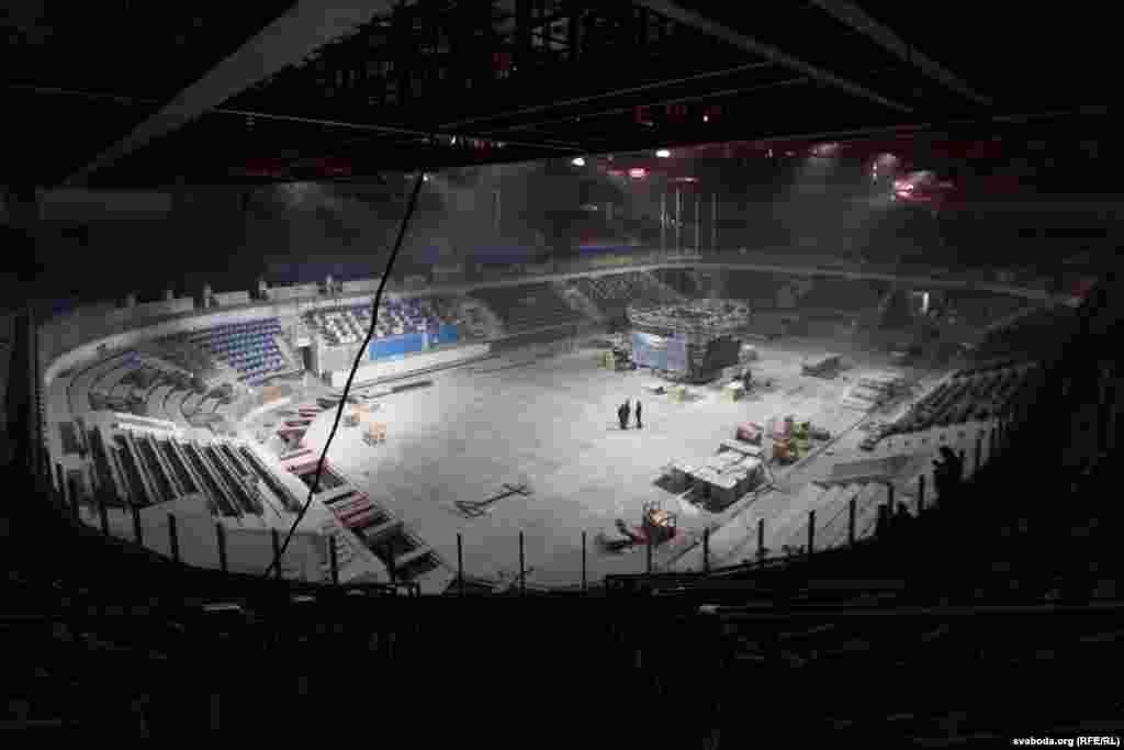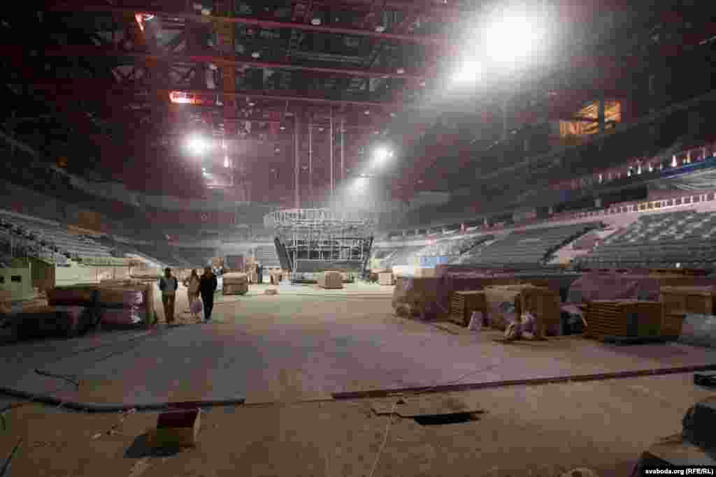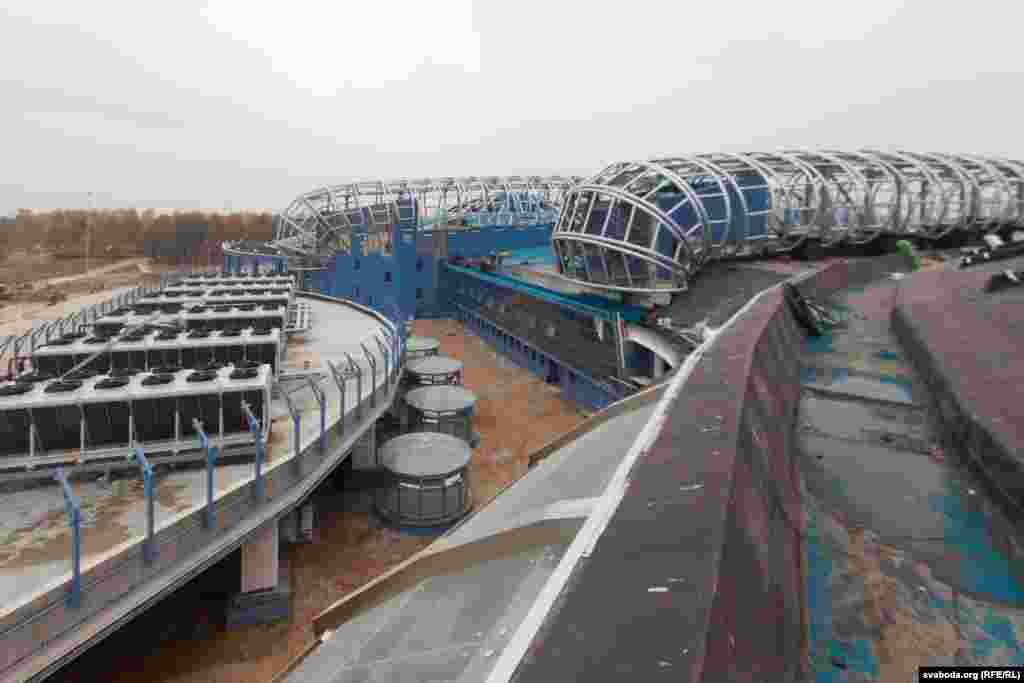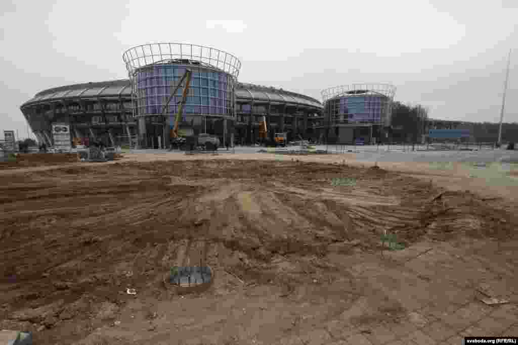 За тры тыдні да заплянаванага адкрыцьця працы тут ідуць у аўральным рэжыме. У прымусовым парадку на стратэгічны аб'ект заганяюць студэнтаў і працаўнікоў дзяржаўных прадпрыемстваў. Аднак фінішу не відаць.