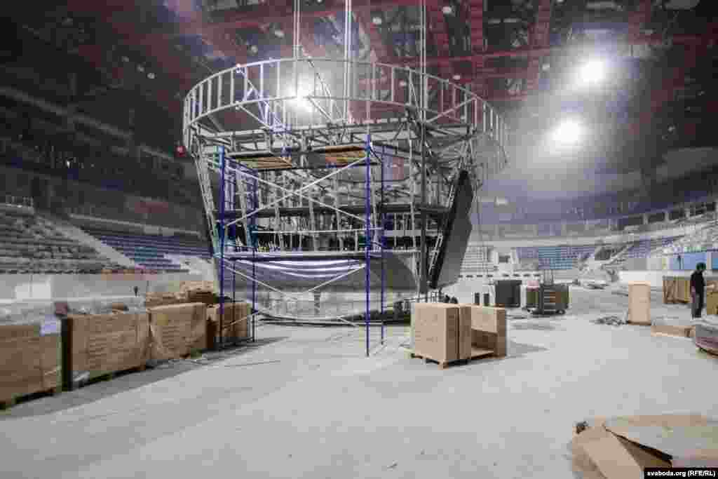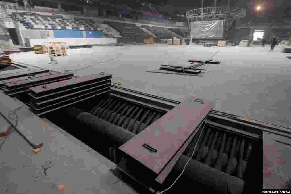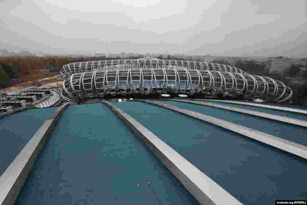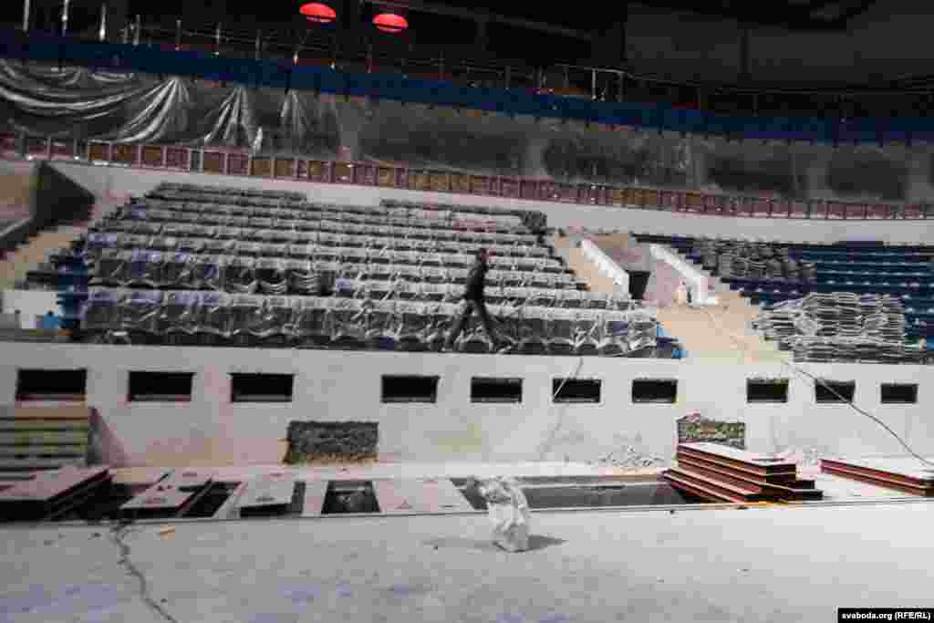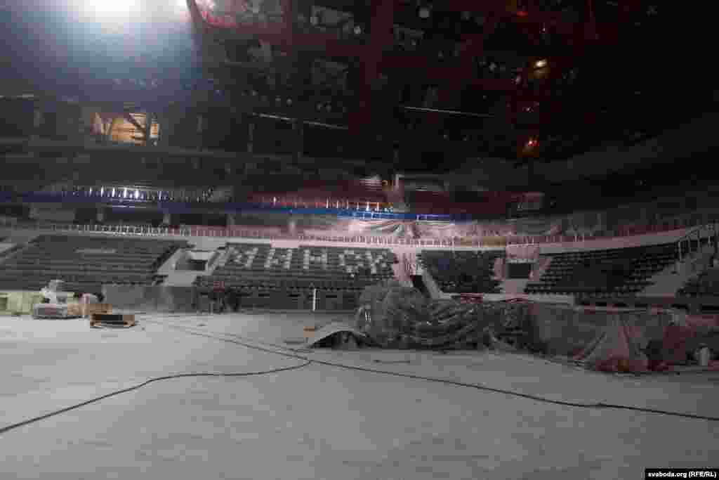За тры тыдні да заплянаванага адкрыцьця працы тут ідуць у аўральным рэжыме. У прымусовым парадку на стратэгічны аб'ект заганяюць студэнтаў і працаўнікоў дзяржаўных прадпрыемстваў. Аднак фінішу не відаць.