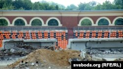 Колішні гонар беларускіх спартоўцаў і заўзятараў — сталічны стадыён «Дынама» — стаіць у руінах. Развалены казырок, усталяваны да Алімпіяды-1980, зьнятыя плястыкавыя крэслы, дэмантуюцца асьвятляльныя вежы.